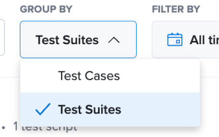 Saved test cases are listed as a default of the Test Cases and Suites view. You can change that view by choosing Group by: Test Suites, which will display the test cases grouped into test suites. The test cases that don't belong to any test suite will be listed at the end of the view. This preference persists at the user level.