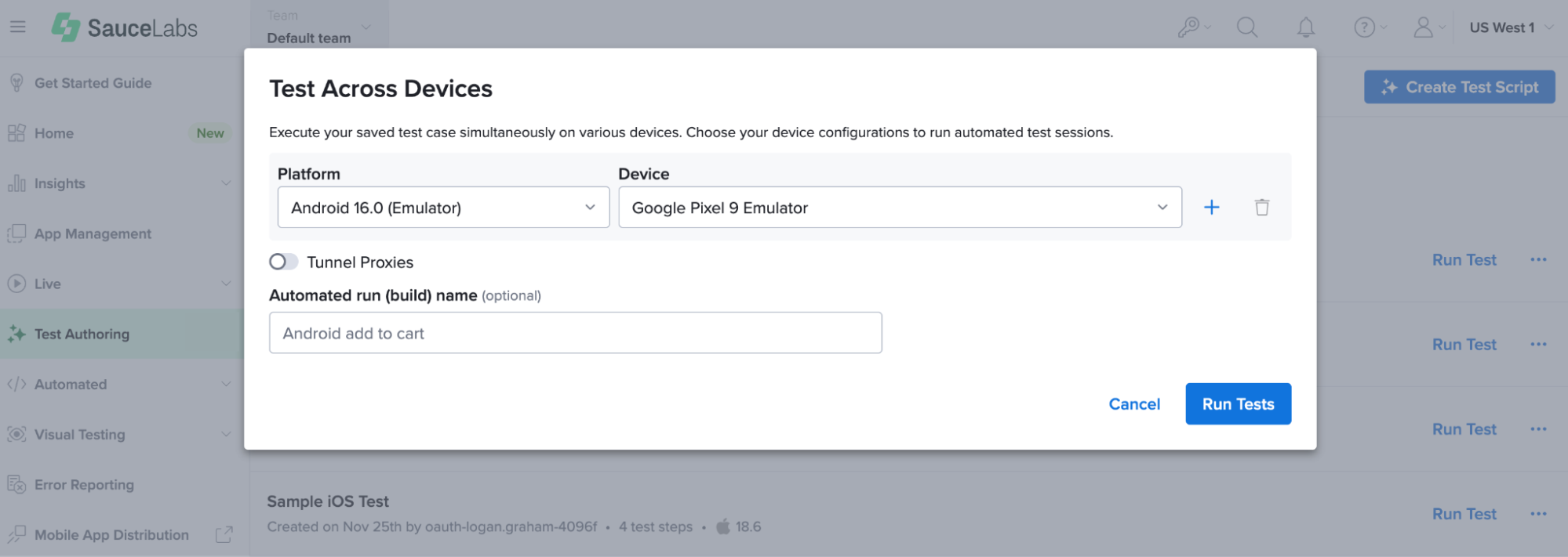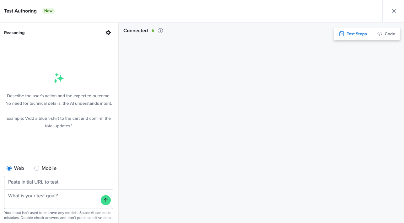 Sauce AI for Test Authoring is a new way to create, edit, manage, and run test scripts at scale, all without writing a single line of code. This tool enables you to write your test goal in the form of natural-language prompts, connect to your web or mobile application via a real device, virtual device, or browser, and let a large language model generate structured, editable, and runnable test flows for you.